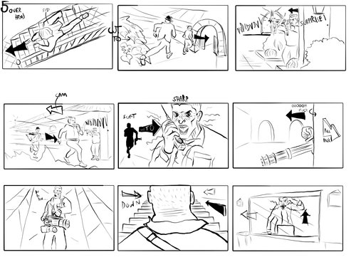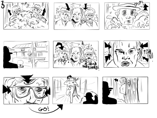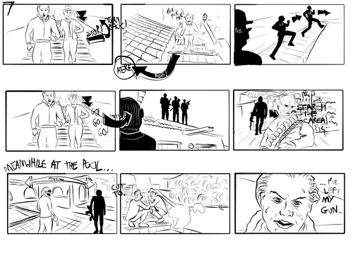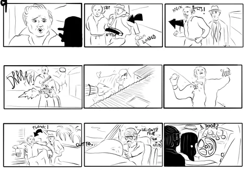 Example page from a project where the director was very specific about ‘rough and ready’ pencilled comic style boarding - given the subject matter, perhaps this makes sense…